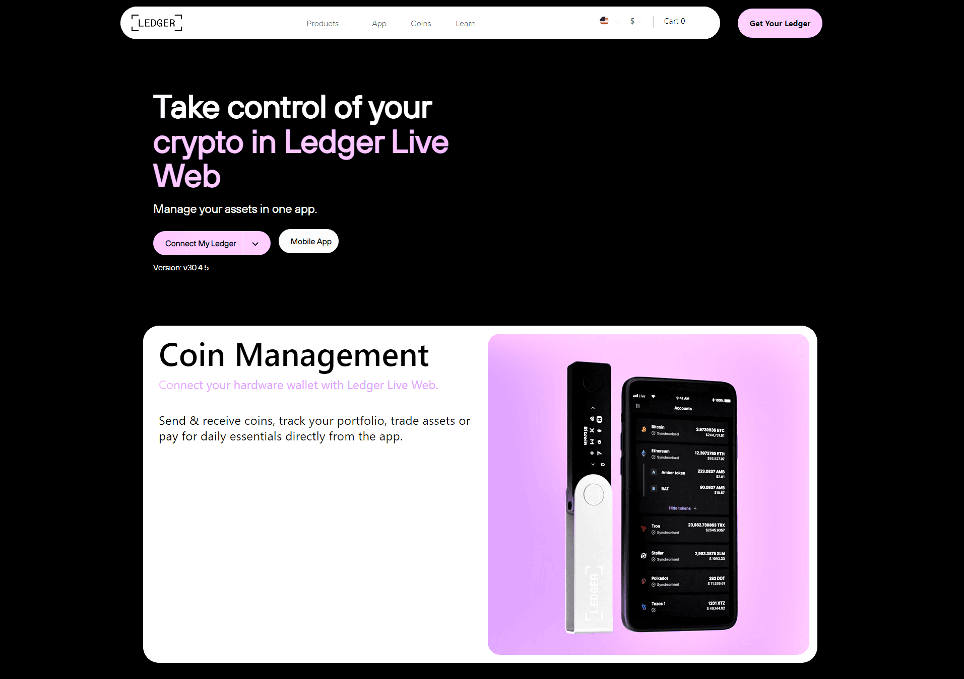 Ledger Live is the official app to manage your crypto portfolio securely. It allows you to: